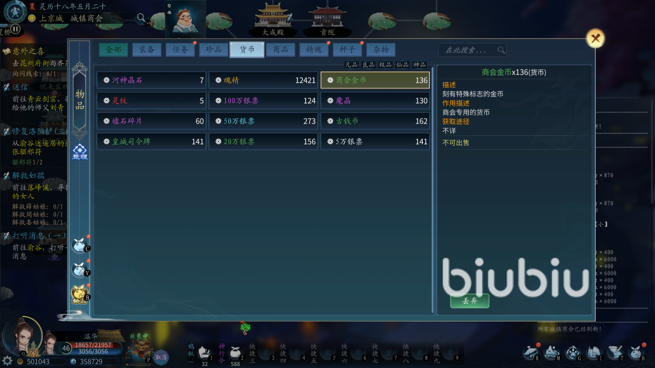 2022年08月29日 14:17 来源:陶远在灵墟中,银钱很好获取,但是商会金币,还是比较难获得的,今天就来教大家灵墟怎么刷商会金币的方法,商会金币可以用来购买商会令牌,商会令牌的作用是立即刷新所有商会物品,非常好用。