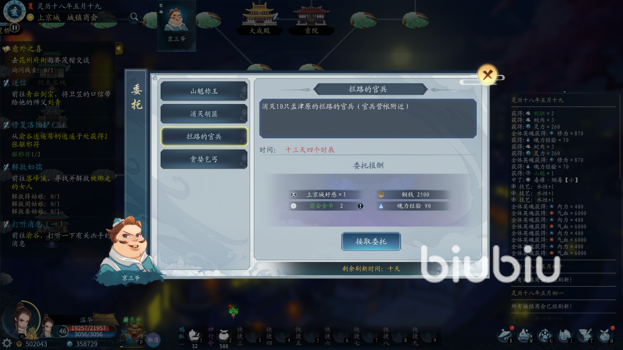 我们先来介绍商会令牌的作用,除了刷新所有商会的物品之外也会将所有商会的委托全部刷新,我们想要快速获得商会金币只有两种办法,第一种就是玩家将复活点设置在一个低于自己等级的城镇,在自己的城镇商会将所有委托全部做完,一般等级低的城镇,商会给的委托都比较简单,将这个低等级的委托全部做完之后,通过驿站前往其他区域的商会,然后高等级的商会只接材料委托。