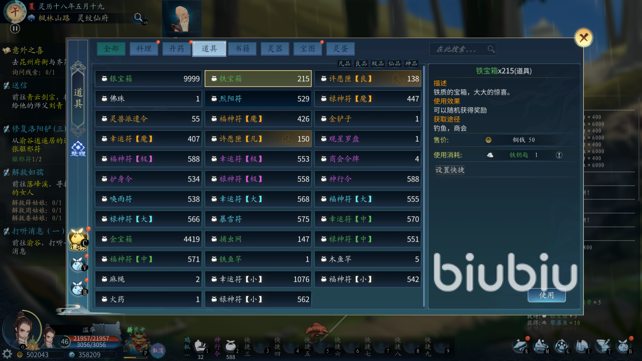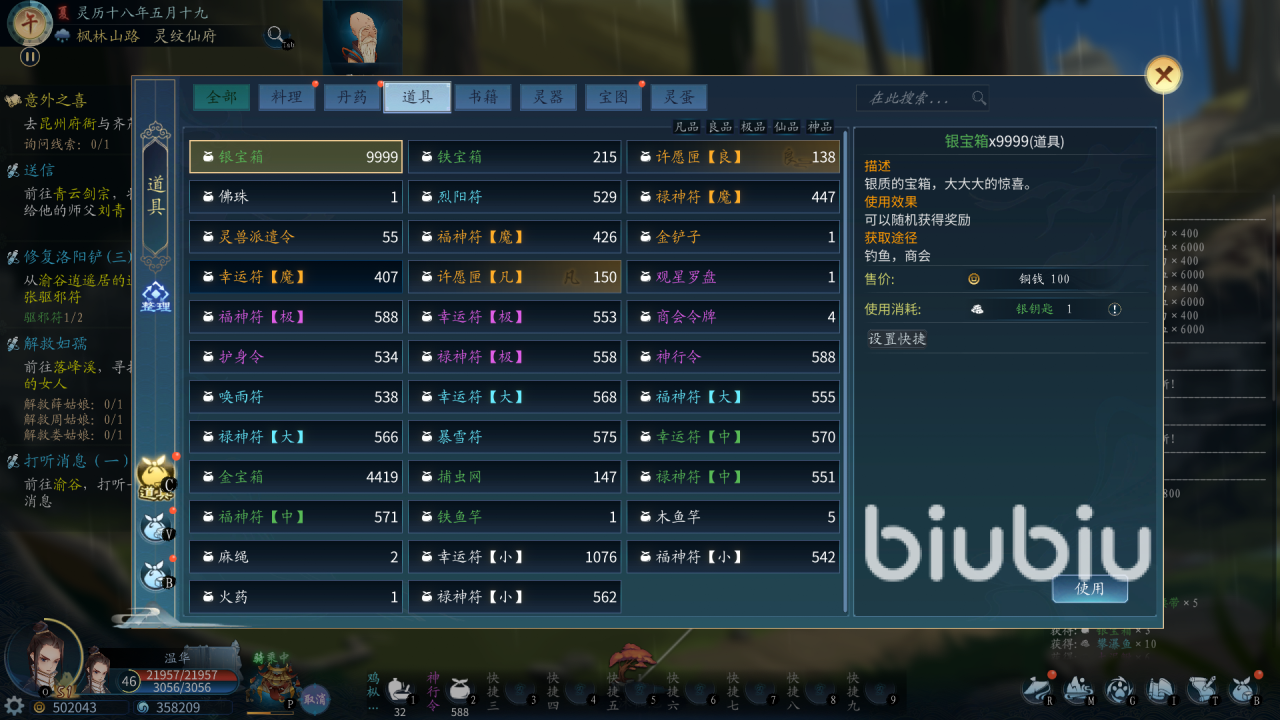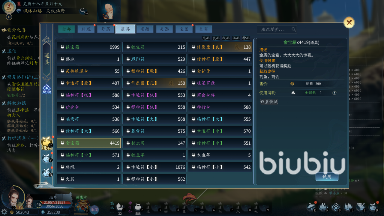 剩下就是钓鱼了,钓鱼要看池塘内有没有宝箱之类的东西,前期没有银钥匙以及金钥匙的时候,有钱就买鱼饵,这是中期我们宝箱最主要的来源,而宝箱内,是有几率开出修为丹的,直接增加当前英魂的修为,比较方便,也不需要冒刷怪那么大的风险,前期最好直接拿钓鱼神器,一次性吊50-100条鱼,而且银宝箱以及金宝箱都有几率开出魂力丹,直接增加角色经验,英魂的等级是受主角等级牵制的,主角等级高了,英魂才能等级高。