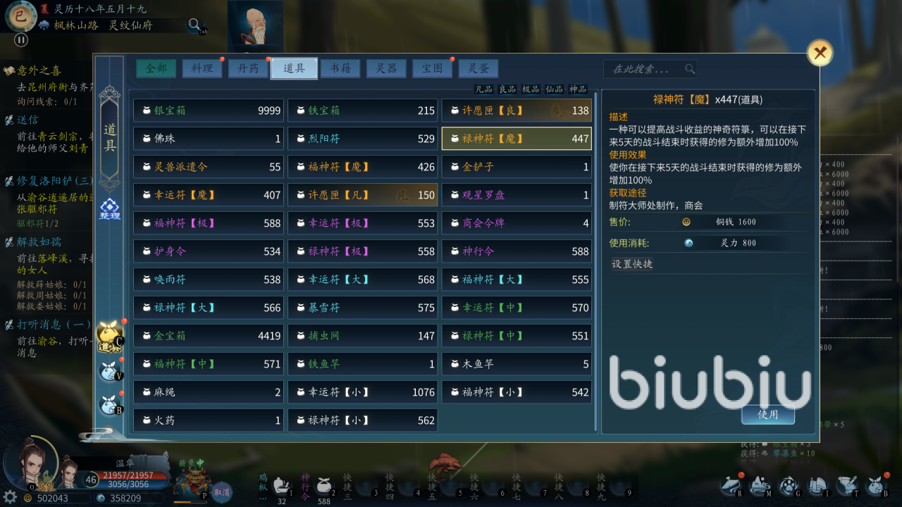 说完了刷怪的,我们再来说说,不靠刷怪的办法;游戏中的几个杂学也可以获取经验值,材料足够多的话,百草堂接委托然后疯狂炼药,练药多了,可以直接送给百草堂刷声望,百草堂好就好在声望够了之后,可以解锁更好的丹方,做更好的丹药进行售卖或者辅助战斗,泰丰楼可以直接在客栈买材料,比较方便,但是后期料理的作用比较小,没有丹药的收益大。