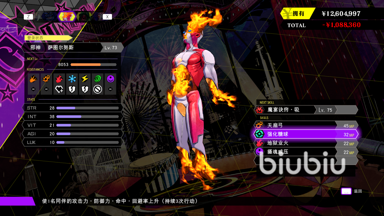 豪华版中,我们能领到3只带有强化糖球的恶魔,分别时撒旦,将门以及摩罗,这三只怪都属于物理类型的恶魔,辅助技能只不过是一个外带的而已,纯辅助性质的恶魔在前期比较少,而且前期的辅助技能算不上特别好用,只有在中后期等主角等级到达一定之后,再去合成的恶魔才会比较好用。