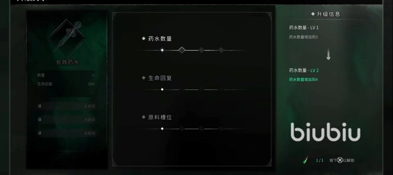 玩家提升药剂的等级之后,可提升药剂的使用次数、回血强度以及在制药时可以放更多的材料,从而加强药剂的作用。