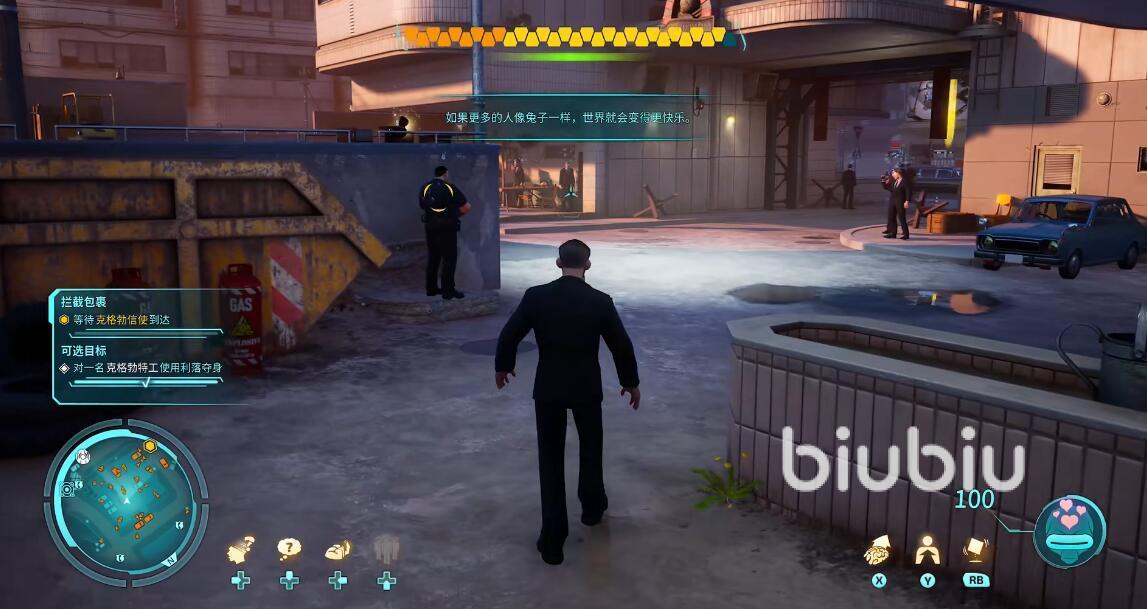 当信使出现在汽车边的时候,玩家们可以直接与其进行对话,大家可以通过对话选项来快速博取对方的信任。注意,每一次选项都需要选择最合理的表达方式,如果突然发动攻击就会直接导致任务失败。成功博取信任之后,敌人会将公文包交给玩家们来运送。
