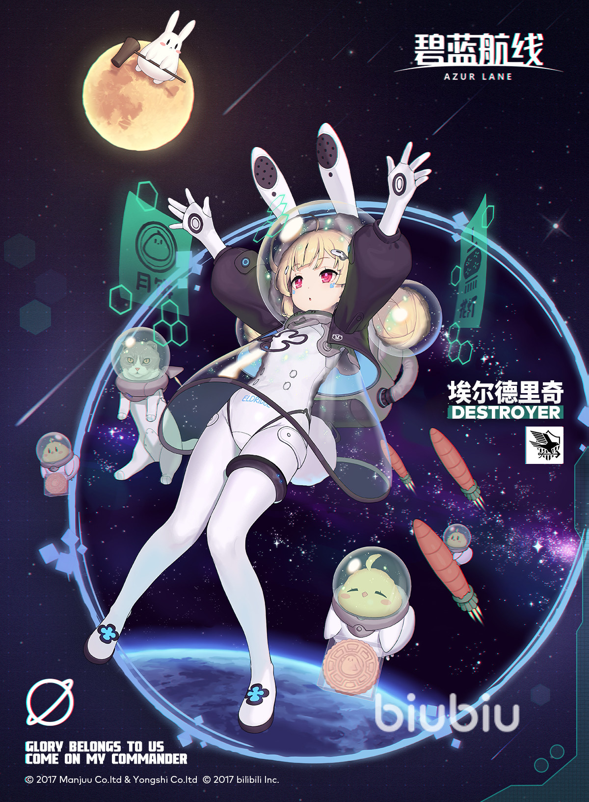 舰B的皮肤质量是相当不错的,不过埃姆登的这款有点厉害,得多打点圣光。另外还有两款皮肤复刻埃尔德里奇-「太空中秋节」和 马布尔黑德-「29.5日的赏月时间」,如果有多余红尖尖的话,可以全都要。