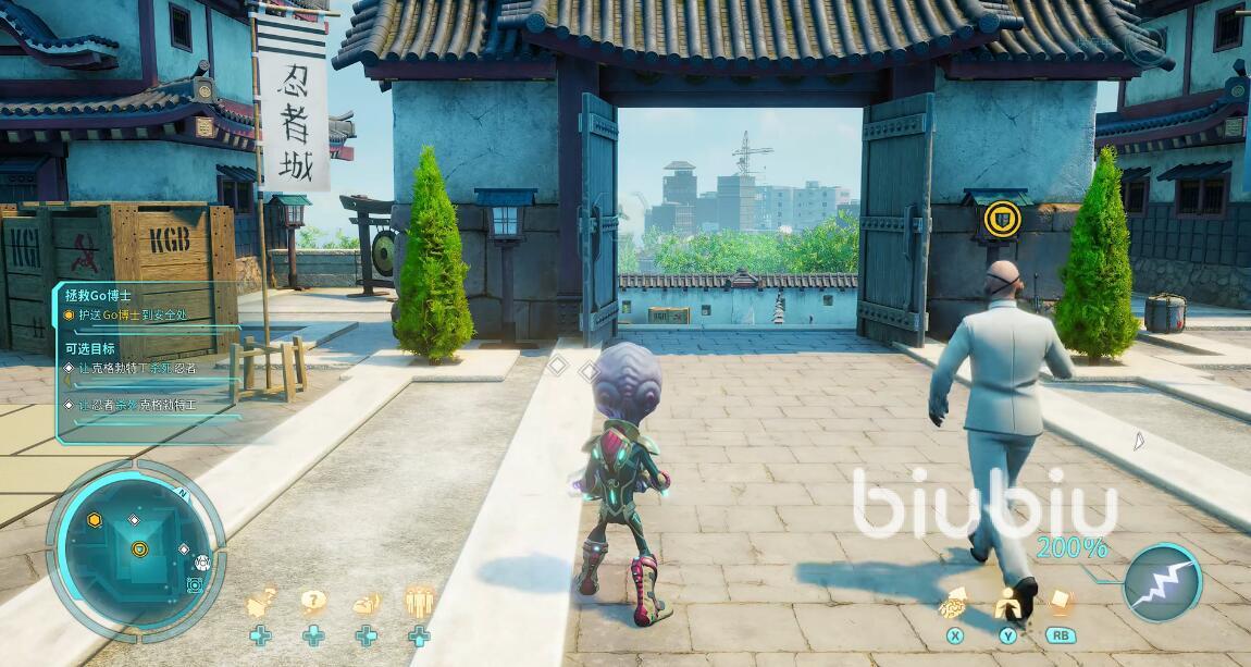 同时,忍者也会释放大量的远距离攻击,玩家们在躲避的时候最好开启飞行器,这样可以让忍者的武器丧失掉进攻优势,在空中也可以更快速的找到目标。当各位顺利将GO博士拯救出来之后,白忍者会直接现身将其带回家。此时,玩家们的任务目标就会切换为摧毁掉岛内的黑城堡。