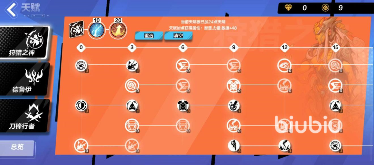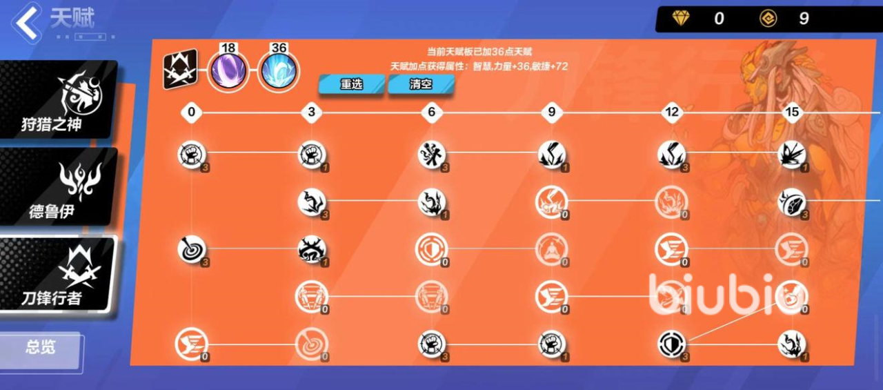 3、天赋选择:狩猎之神(世事无常、麻痹)、德鲁伊(伺机而动)、刀锋行者(奇妙角度、跃迁)。