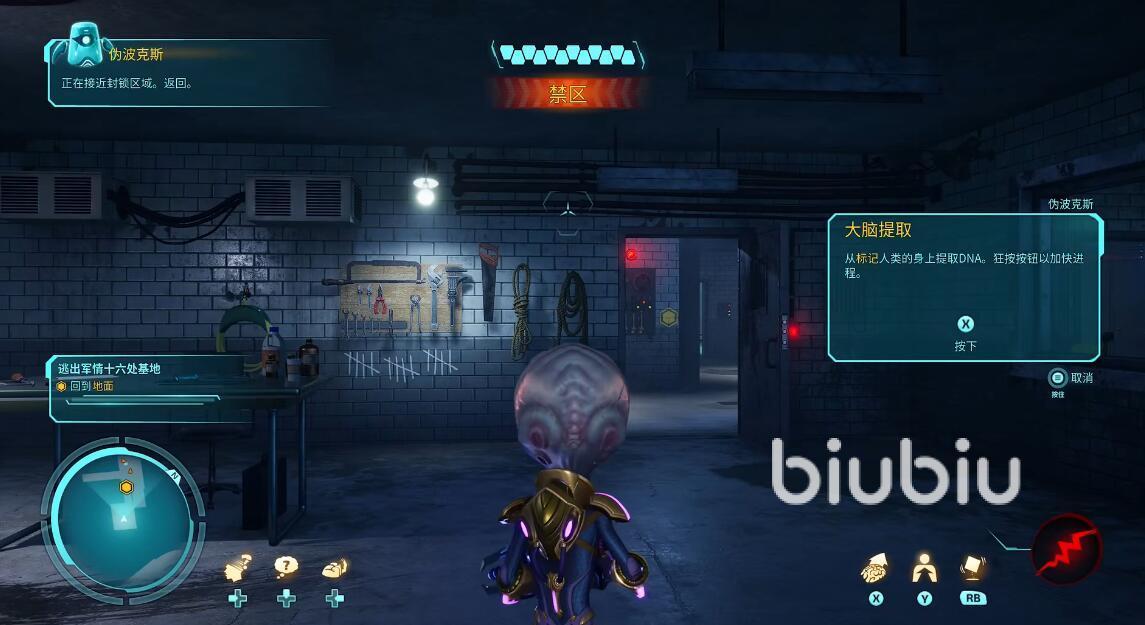 结束对话之后,玩家们的第一个目标就是逃离特工的基地返回地面。这一阶段需要和敌人不断的进行战斗,同时玩家们是无法使用电击枪的,小编建议大家优先使用念力去消灭敌人。每当各位发现了一名敌人之后,直接使用念力来进行操控,然后利用敌人互相进行战斗来达到消灭他们得目的。