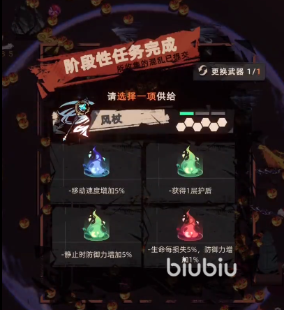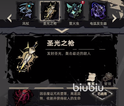 等到大家把配件和祝福都集齐了以后,武器的综合性能也就达到了最为巅峰的状态,这个时候大家只需要去通过拾取的宝箱,就能够把武器进化成为神器,需要注意的是,武器的进化是受到了祝福颜色影响的,如果三个祝福的颜色一样,还可以进化成为特化神器。