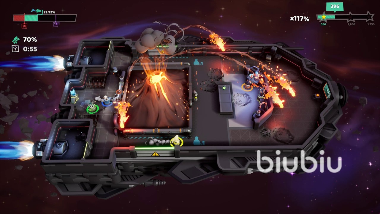 而正是因为控制器玩法加入,增加了很多合作乐趣,能够与同一艘太空船上航友一起共同联手拯救太空船。当然丰富的玩法绝不仅仅是将太空船安全的驾驶回来,这样非常没有挑战性,所以更加刺激的额外目标玩法出现了,在保证基础任务达成之后,可以通过这些额外目标向他人证明自己团队实力。