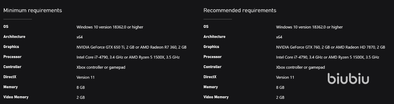 跟一般的大型游戏以及以往系列的游戏相比较,这款游戏的配置还是很良心的,基本上我们的电脑都可以,8G的内存是不是很不错,搭配2GB的显存以及WIN10的处理器 ,直接按照下图所示的配置需求进行升级就可以了,最低配置是运行基础,推荐配置才能更好地体验。