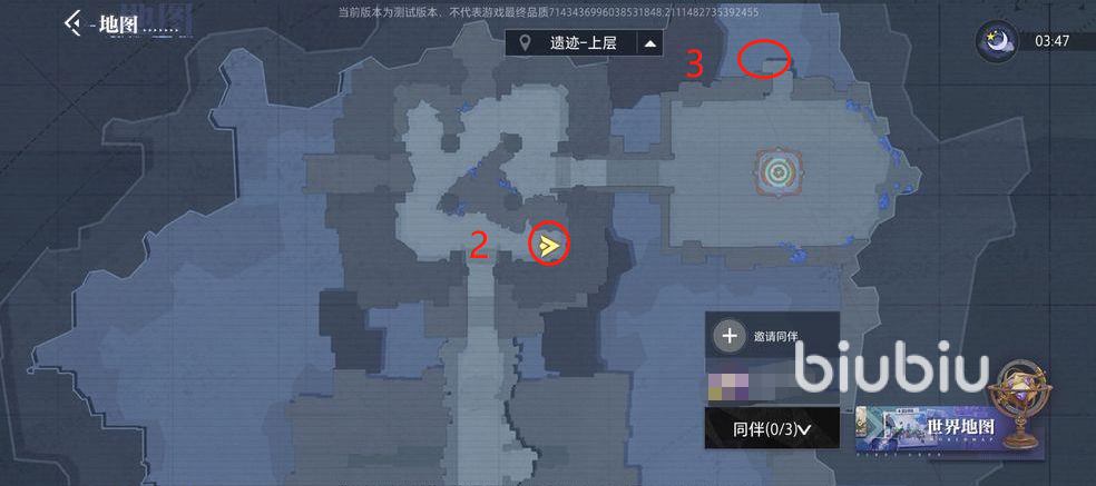 3、宝箱3:宝箱3位于遗迹的上层最东北角附近,小编会在图中为大家标注出来,达到后站在第一个平台往左看就能找到第三个宝箱。