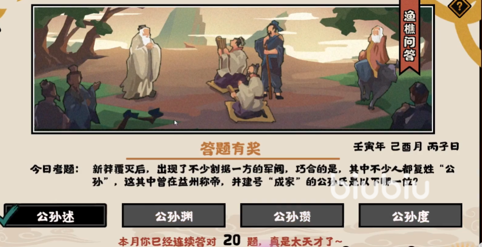 无悔华夏渔樵问答9.20是什么 9.20渔樵问答答案解析