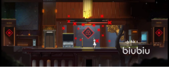 第四个场景用红光依次点亮方阵里第二排的连续三个。这时候别忘了带上小伙伴一起去楼上,把小伙伴留在楼上,小女孩继续下楼,点亮方阵里其他的电,五个黄色光同时飞向上锁的门,门就会打开了。在通过之前,我们可以获得新的技能:剥夺跃迁。其实就是之前剥夺技能的升级版,当你穿过敌人的时候,你可以瞬间剥夺它身上的光。