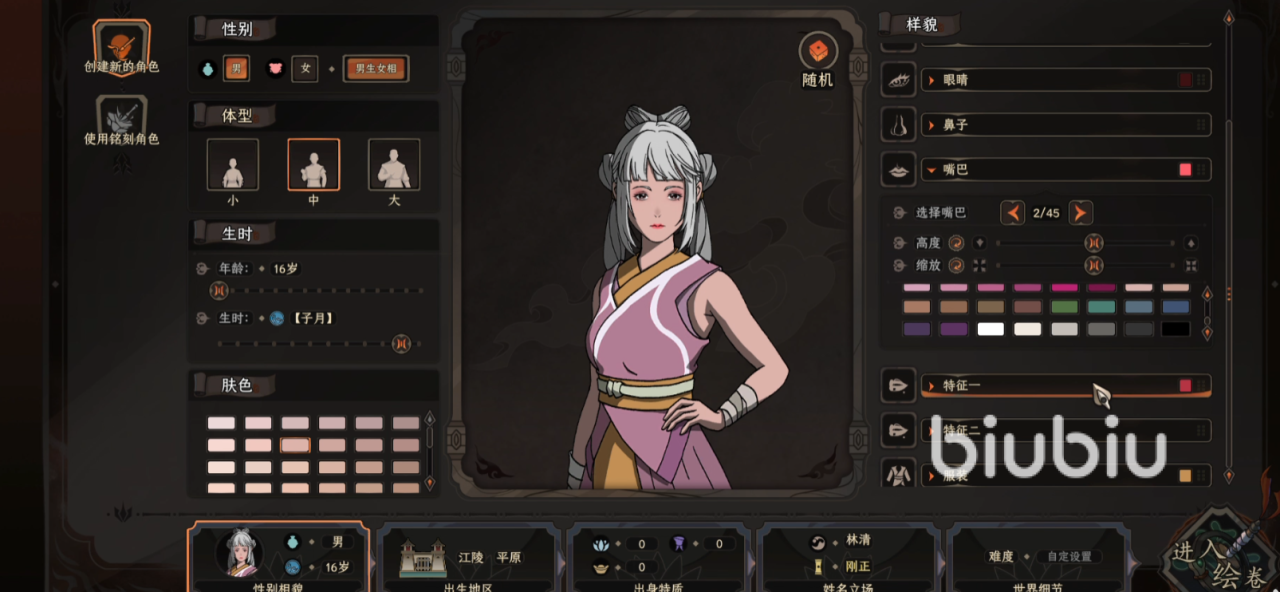 那么今天的太吾绘卷新版怎么捏出好看的脸也就先介绍到这里了,这边小编插一嘴,父母的魅力值不会影响子嗣的魅力值,如果主角加入了玄女或者少林,会将玩家的发型强行替换成光头,这个要注意,还有那些五官,在构建好之后,就不能再进行更改,只能更改一些脸上的配饰,男生女相以及女生男相是不会遗传的,所以玩家可以放心大胆的选择这两个独特的面容特质,不要害怕之后的子嗣会继承。