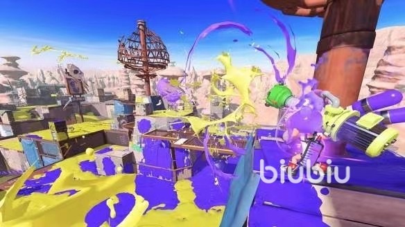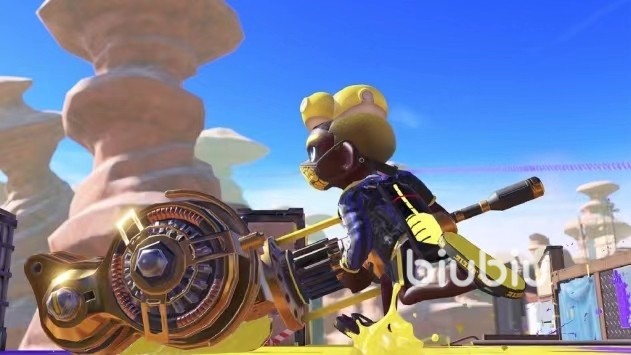 接下来是飞溅泼桶,沿直线泼洒墨汁,可以攻击到很多死角位置。火热爆破枪,在命中时造成极高的伤害,缺点是射程比较一般。桶装旋转枪,连续发射子弹,缺点是消耗的墨汁比较多。三发猎鱼弓,特点是能够朝多个方向发射,并且随着姿态变化射击也会发生变化。