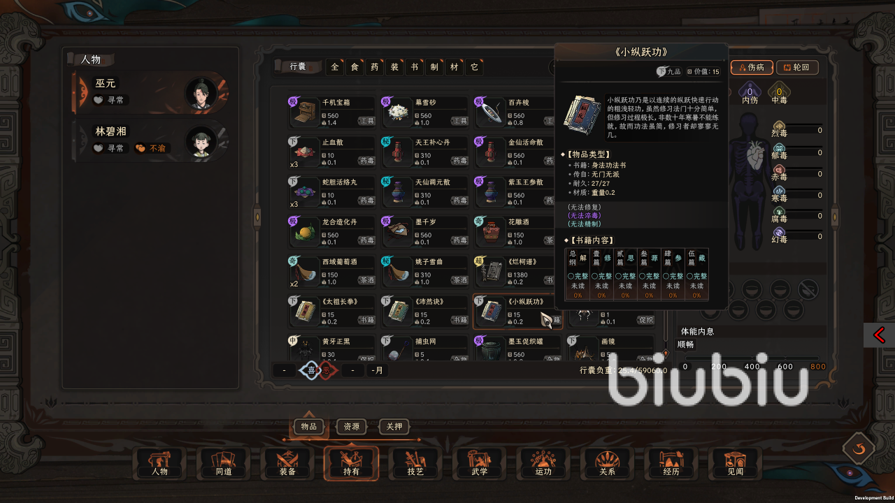 小纵跃功则是玩家一开始使用的身法内功,这个身法也比较鸡肋,移动速度不快,施展速度还算是比较快的,在同类型的身法面前不值一提,前期可以用一用,后续拿到本门派的功法之后可以直接换掉,不需要使用这个身法浪费格子,之后可以将这本书赠与他人,来获取好感度,也是这本书仅存的一点意义了。