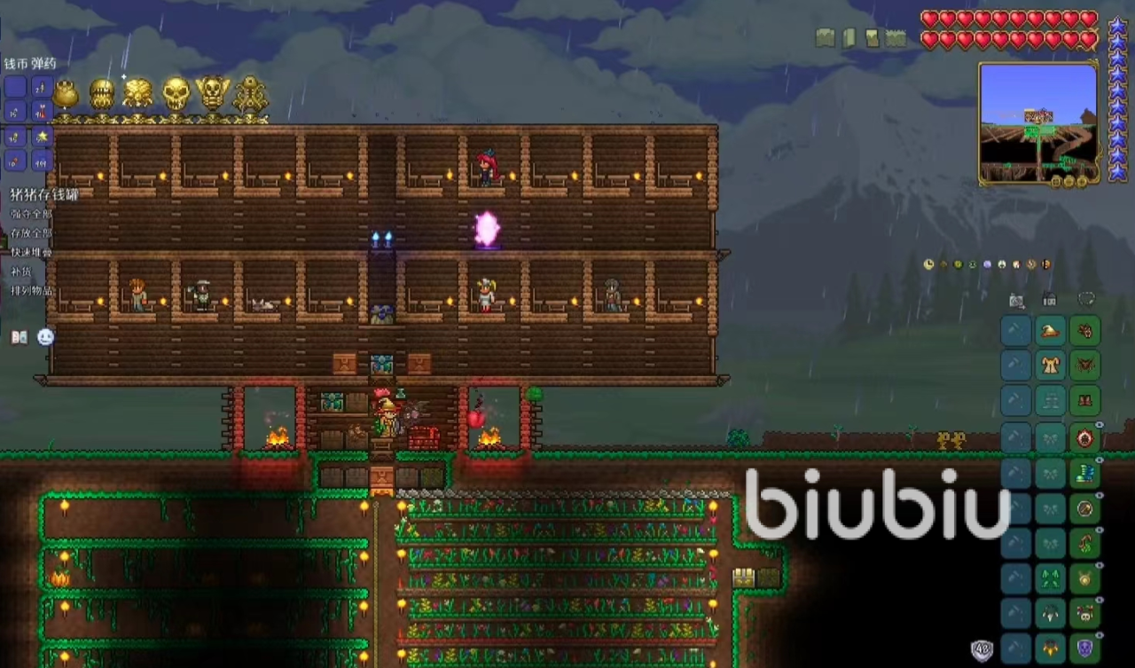 2、推荐在此时使用战争药水以及水蜡烛,这个是用来增加蠕虫的数量以及刷新效率的。要注意在左上角观察水蜡烛的持续时间。