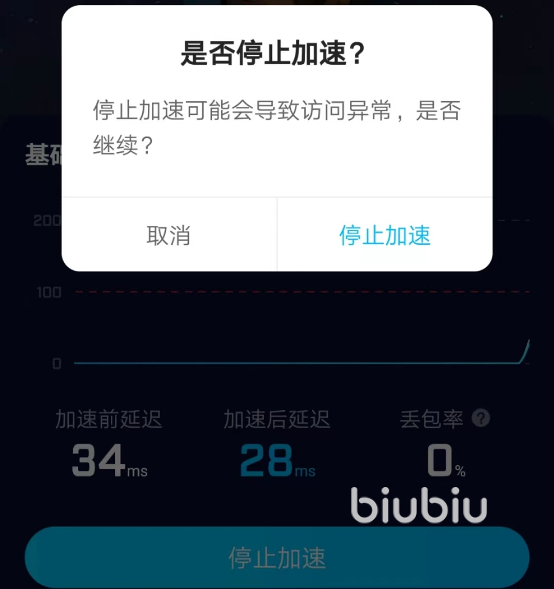 加速以后呢大家只要享受游戏就好了,软件会在后台为大家的维护网络的,确保源源不断的优质网速输送给小伙伴。关闭加速的方法也很简单,选择停止加速以后就能关闭了,同样是采用一键式的,可以说方便又快捷。
