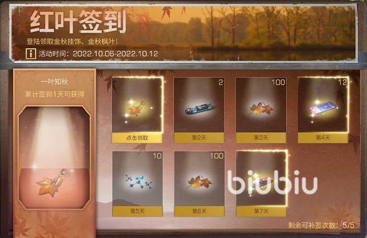 第二个活动叫做红叶签到,这个活动的时间是从6号开始,一直到12号结束。玩家每天登陆都可以获得哦。