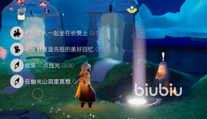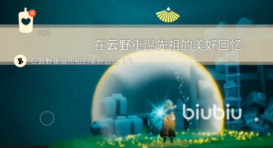 然后是一个重温的任务,此目标人物是在进图后过云洞 往左边的隐藏图里飞去,进去后再往前走,左边的位置会还有一个屏障需要进去,进入后就能看到此次需要重温的先人了,只要重新收集一次就能完成这个任务了。