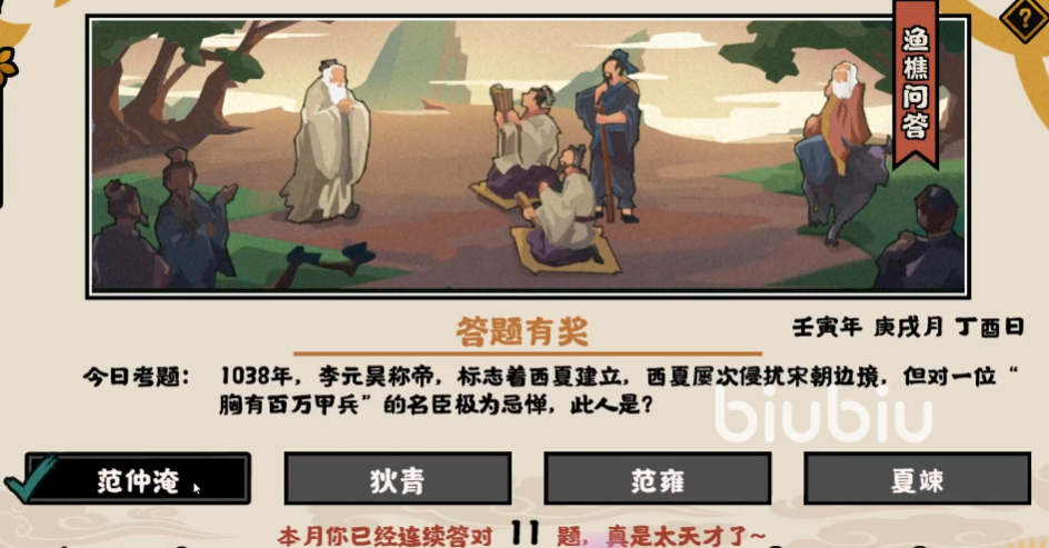 无悔华夏渔樵问答10.11是什么 10.11渔樵问答答案解析