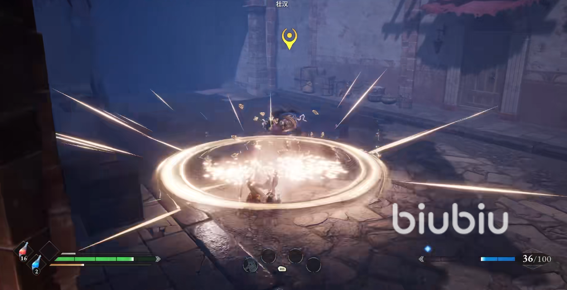 接下来,各位可以使用法杖来进行远距离攻击,同时配合法术技能在地面发动震荡波,这里就可以直接让敌人进入倒地的状态,当壮汉处于此状态的时候,会在原地停留几秒并不会实施反击,玩家们就可以抓住这个机会对敌人进行攻击,尽量将所有冷却完成的技能全部释放在对手身上。