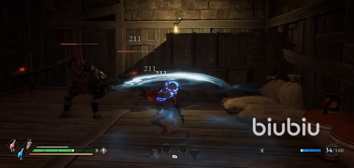 昆图斯在房间当中正在被三个战斧帮寨的士兵围攻,为了避免NPC被敌人给消灭,玩家们在这里尽量快速移动到敌人身边引起注意,然后与对手们展开战斗。过程当中需要留意的是最强壮的敌人,这名敌人的近战能力不错,攻击的时候可以对玩家造成较高的伤害,建议大家在战斗的过程当中优先击溃他。