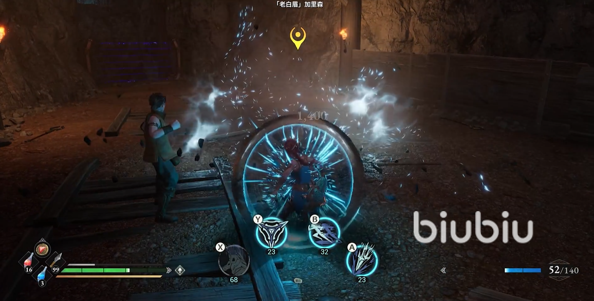 首先,刚进入战斗的时候,玩家们会发现主线剧情当中的NPC也加入到了战斗当中,此时各位可以优先让角色远离老白眉,让NPC前去吸引对方的火力,而玩家们这个时候可以释放法术技能进攻,同时切换为远距离进攻模式去消耗对方的生命值,这样的话就可以让老白眉承受更多有效伤害。