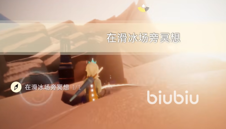 想要做任务前提就是要在遇境接取任务,然后观察今日的任务要去哪里完成,就像今天的就需要前去两个不同的图中完成,其中一个是冥想,指定的地点是在霞谷中,各位在进入霞谷之后向下滑行来到溜冰场,在这里右边的高处平台上就有要打坐的地方。