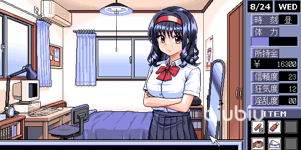这位插画家也曾在PC-98的《赛马娘》中,获得了广泛的关注。《同居人》的插图、音乐和系统都是由他自己创作的。《同租人》的目的是要做一款复古的 PC游戏,不过从官方的截图来看,这款游戏应该是一款以美少女为主角的虚拟现实冒险游戏。