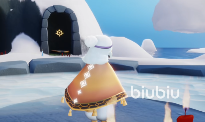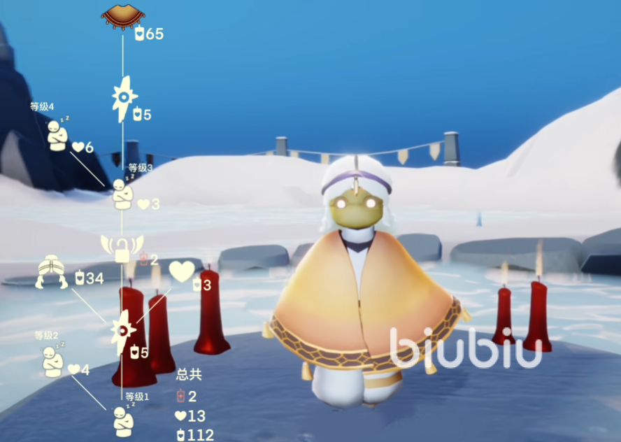 另一件东西就是斗篷了,它的样式也是比较独特的,整体以黄色为主,外围有一圈花边,周边还有几个坠子挂在上面。喜欢的小伙伴可以尝试入手,换取它大概需要六十五根白蜡,对于游玩有一段时间,且有好看的斗篷的玩家来说换了的话就是放柜子里落灰的,所以可以不入手。