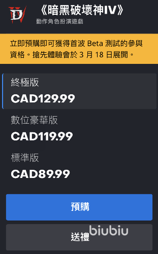 暗黑破坏神4预购价格是多少 暗黑破坏神4预购价格简介