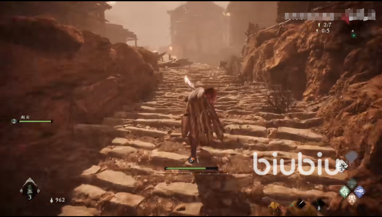一出生,你只是一个小兵,获得的武器也比较简陋,但是同样的,遇到BOSS其实也并不是很厉害。在遇到第一个小挑战张梁的时候,对于玩家设置和操作都有一点要求的,要注意躲掉他的技能,还有一点就是在攻击的时候,由于普攻数值比较低,砍一刀差不多就25点左右的伤害,主要是靠处决打伤害,所以玩家在操作过程中不要贪刀,主要还是各种技能伤配合起来,因为贪一两下普攻导致自己血量大残实在是得不偿失。