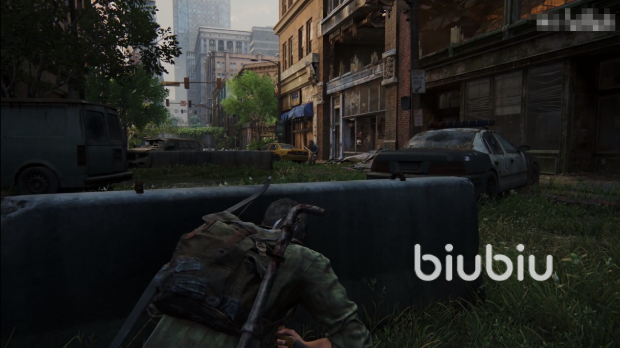 继续前行我们会过一段剧情,然后带着艾莉又会遇到猎杀者,还是一样的操作方式,利用好掩体逐个攻击,用拳头,砖头什么还是比较省武器的。打完之后就可以带着艾莉从街边的梯子爬上去,逐渐往大桥走去。