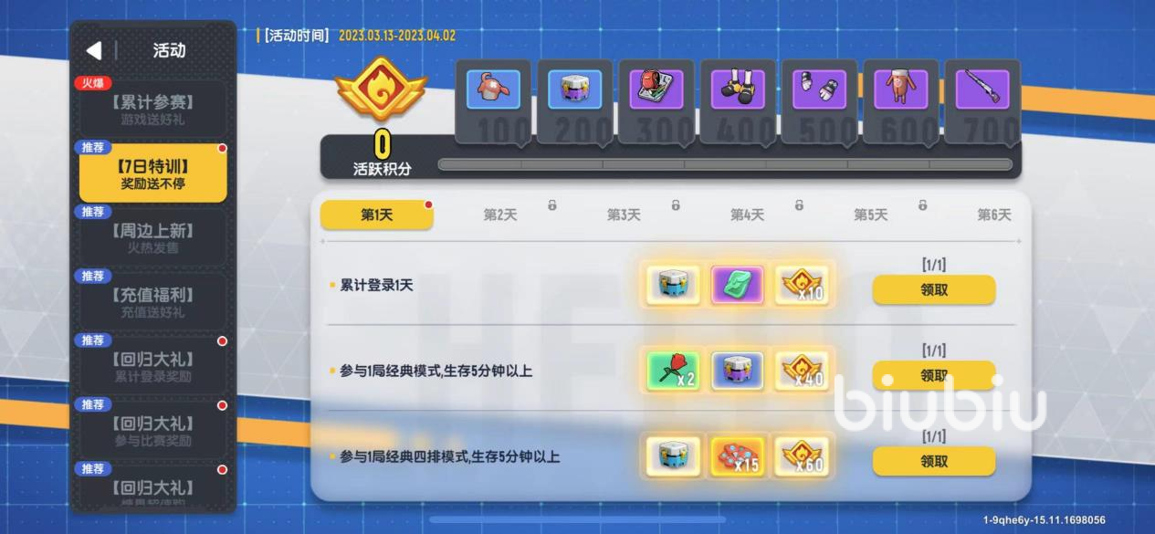 为了提高玩家的战力,还推出了七日特训任务,每天需要做的事情都不一样,但是要求都很低,会赠送我们许多游戏道具,每日完成之后还可以获得皮肤组件,免费得到外观岂不美哉。活动时间从3.13号到4.2号,给出的时间跨度还是非常大的。