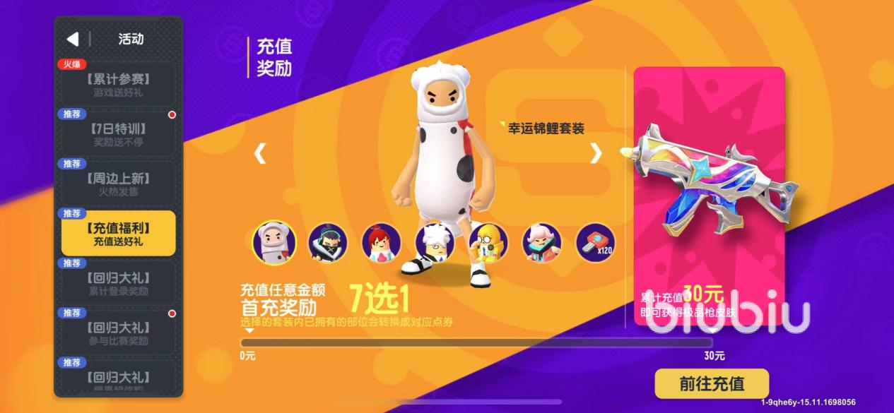 对于新玩家或者从未充值过的玩家来说还有充值奖励,首冲是有非常多的优惠的,玩家可以随意冲金额,就可以7选1一件套装组件,可谓是非常便宜的,如果充值到达30元,还可以获得七彩枪械皮肤。性价比还是很高的。萌新更是有登录大礼包,刚开始的7天每天都赠送高品质道具,存下来可是能省不少钱,获得好外观呢。