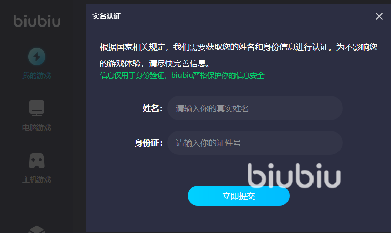 1.biubiu加速器使用简单,登录后的实名认证的过程也非常轻松以及流畅,玩家们输入信息就可以了,通过速度极快。