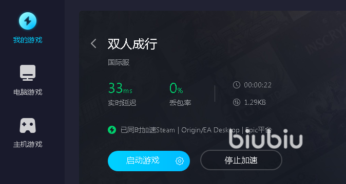 无论你是在EA或者steam平台游玩该作都能使用biubiu,同时它也会在加速游戏本身时加速平台,在游玩结束后如果你想关掉加速器那么一定要记得先结束游戏进程,不然可能会造成掉线等情况,关掉之后再停止加速也不迟。