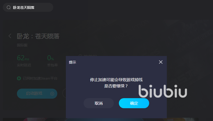 之后等到游戏体验结束了,我们需要先退出游戏,紧接着再回到加速界面点击停止加速就可以啦,整体来看的话这个加速流程还是比较简单的,在使用biubiu加速好游戏之后,我们的整体游戏体验都将得到升华。