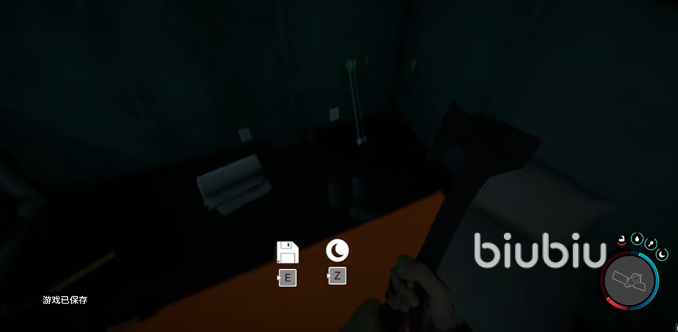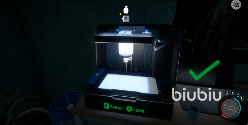 之后电脑上会有进度条显示正在为你制作,你不用管直接来到左边的打印机旁边,如果你没改键位的话完成之后上面会提示按E进行领取。结束之后房间角落有张床,你可以进行休息到天亮,离开之前建议保存一下以防意外。