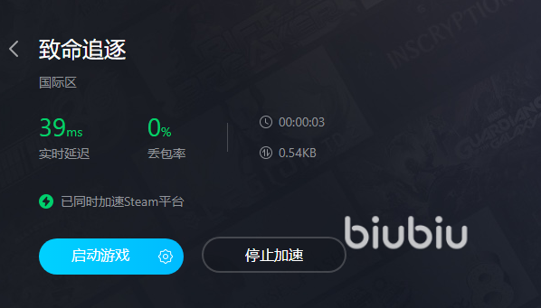 在加速完成之后我们可以选择直接在加速界面启动游戏作品,只需要在第一次使用的时候配置好路径或者是自动搜索就可以了。在这里我们还可以看到biubiu的工作情况,延迟和丢包率都能够大大降低,在游戏中帮助我们获得更流畅的体验和更好的战斗表现!如果不玩了返回这里点击停止就可以了。这里也要告诉大家一个好消息,这款加速器还会同时为游戏对应的平台进行加速,这样能够方便我们登录账号、查看攻略或者是加好友联机,是不是非常棒呢!