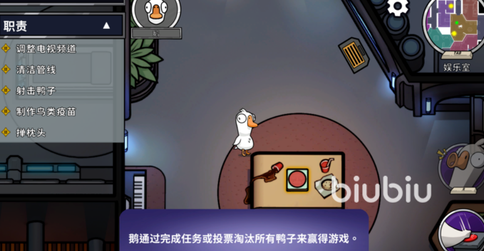 活动地图上有大量的任务点,鹅鹅作为善良一方可以在任务中获得胜利。这些野鸭可以通过执行“毁灭”任务来制造混乱,也可以通过执行“善良”的任务来迷惑观众。