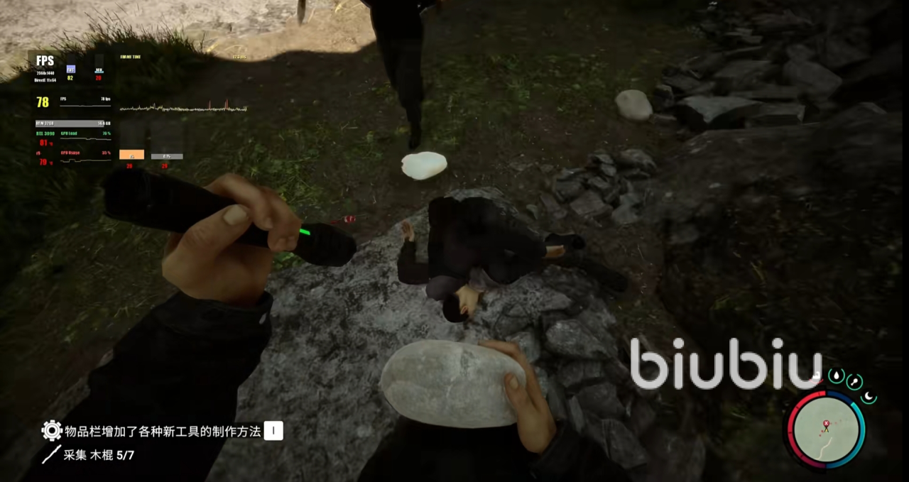 在地图中的紫色感叹号中,可以发现一些尸体用绳子被吊了起来。我们用斧子砍断以后,则可以随机掉落一些物品,例如手电筒,木棍等等。在挖坟的地方用铲子向下挖掘,可以找到钥匙卡,这里也需要用到铲子这一重要道具。