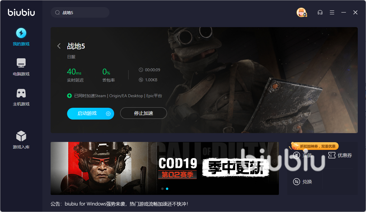 以上就是小编为各位战地5玩家们推荐的解决高延迟的办法,不知道对各位小伙伴们有没有帮助呢?小编认为,用一顿饭钱都不到的10元来购买一个月的游戏体验实在是太划来了不是吗?心动的小伙伴们赶紧点击文章中的链接下载biubiu加速器吧~