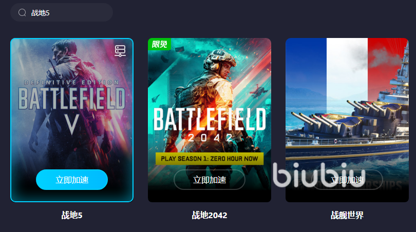 这个时候直接去搜索战地5并点击进入其中,就能够见到针对游戏的各个简介,而加速的字眼也是很鲜明一眼就能看到,点击一下就可以享受它为大家带来的加速服务了。