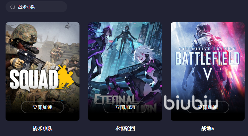 其次就是搜索战术小队这款游戏,在工具中提供的加速服务涉及的游戏种类很多,它只是其中之一,玩家需要做的就是去点击进入到简介页面中,这时候会看到下方有加速的字眼,大家点击就能享受对应的加速服务了。