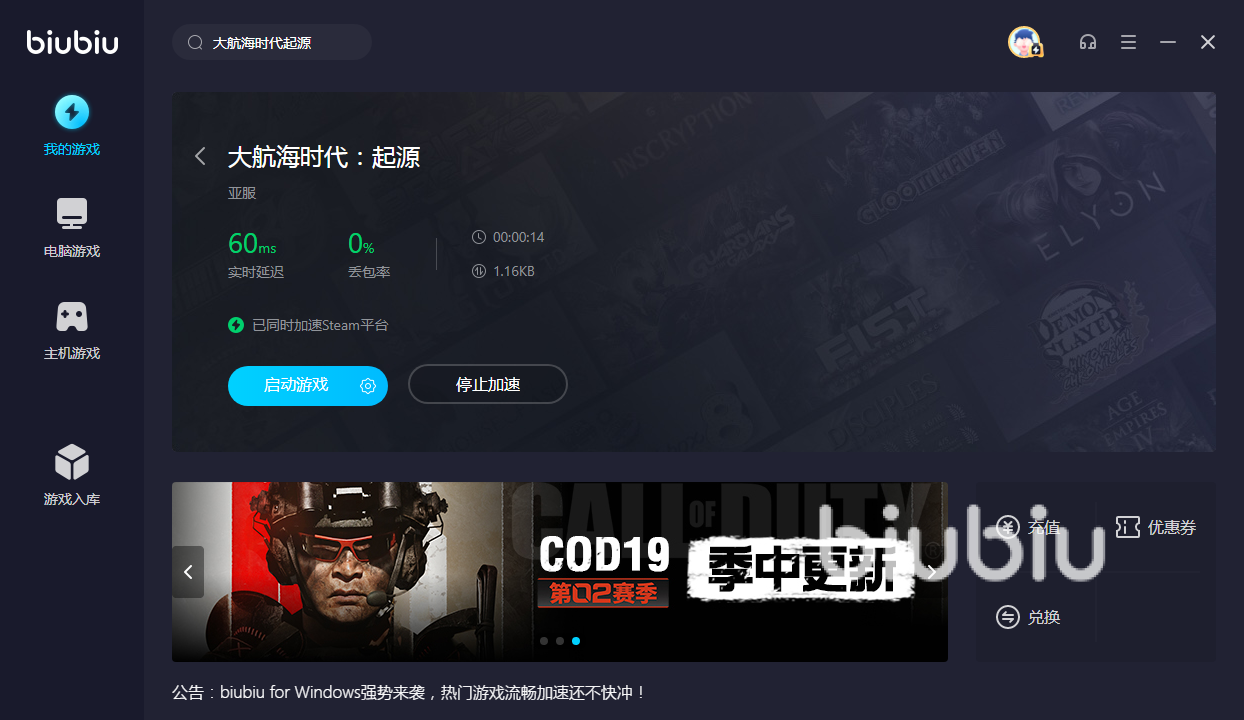 要来体验这一切,需要有很好网络和硬件作为基础,最为关键的是目前该游戏并没有对国服开设专门服务器,所以广大玩家要想体验只能去亚服或是其他地区服务器,这样就带来了更大的网络阻力。好在利用biubiu加速器优化之后,这些问题都能迎刃而解。首先解决了跨服登陆问题,现在登陆其他地区的服务器就和国内一样顺利,在加速方面做到非常优化,可以以极低延迟去体验精致场景。要想达到这样的目的,玩家需要付出的仅仅是每天不到一元钱的投入。