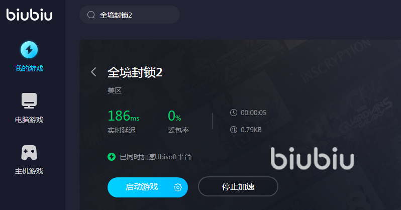 这款软件很容易上手,它的使用方法堪称傻瓜式启动,就算是第一次用加速器的小伙伴也可以驾驭,只要点击蓝色的按钮就可以启动加速了。游戏结束以后回到软件界面,再选择停止加速就可以了。软件会帮大家清清楚楚记录加速时长,本地游戏也会把全境封锁2加入进来,下次可以直接加速,不用重新搜索了。