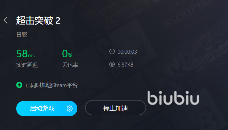 因为超击突破2本身就是有很多个区服,所以网速上的差距还是相当大的,包括新加坡服、北美服、欧服等等,大家肯定是优先选择网速更快的节点。一些刚下载的小伙伴可以直接在上方的搜索栏目内找到超击突破2,然后将其添加到我的游戏,选择后点击加速。biubiu加速器一般都是选择最优链接的,这一点大家不用担心,加速过程相当稳定,延迟相较于之前肯定是变好了不少,想开就开,想关就关,相当的方便。还在犹豫的小伙伴不要等了,新手用户三天免费,冲起来。