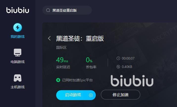 2023年03月29日 11:58 来源:神牛飞小火马很多影视作品中都会对黑道有所涉,不过我们是法治国家,这是不允许的行为。不过在游戏的世界中,玩家们到是可以尝试一下。有了了解也就不好奇了,也就不会去触碰了。不过,游戏黑道圣徒重启版闪退用什么加速器,因为游戏的原因,这个游戏开启后会占用很有内存和网速,对于玩家们的基础配置有点要求,那么配置低的玩家想要怎么办?那就使用biubiu加速器吧。